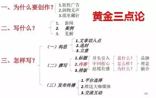 發表時間:2016-02-12 17:37 在商業廣告鋪天蓋地的今天,我們更喜歡有內容、有故事、有品質而同時能帶來價值的軟性廣告。 軟文與廣告的重要區別之一就是其傳播性,因為廣告大多更強調廣告性,因此軟文與普通的廣告相比,顯得更有傳播性。 在互聯網興盛的今天,一篇高品質的軟文也許還能引發潮流效應,提升品牌知名度,快速帶來流量,提升成交率。 一、為什么要創作軟文? 軟文就是軟性廣告,它有“隨風潛入夜,潤物細無聲”的特點,一開始讀者被引人入勝的故事或有意思的話題吸引閱讀,最后讀完才發現原來這是個廣告,這不僅讓讀者看完了廣告,還留下了深刻的印象,因此我們可以精心設計軟文,讓廣告在不知不覺中浸入客戶的心。 二、創作軟文寫什么? 1、寫新聞信息 抓住當下熱點新聞快速編輯即時播報; 2、寫案例 把自己親身經歷的案例寫出來,然后再加上自己的分析、感受、評價等; 3、寫簡介 把自己的案例、熱點時事、別人的案例分析總結出來成為自己的東西; 4、寫產品 比如寫自己公司生產的產品,借產品特點和事件宣傳公司形象; 5、寫促銷活動 搜集近期比如雙11、雙12、有獎問答、0元起拍等等熱門活動,提前預熱; 6、寫感謝感動 表揚和感謝各種積極參與十大同學拉票的朋友,能帶來鼓勵和提示的作用; 7、寫自己,寫感悟 把自己的感悟寫成連載,連載時注意后面的篇要鏈接上前面的篇; 8、寫點評和大咖 借助大咖和大咖的點評引發明星效應,增加傳播價值; 9、寫訂單,大咖連環寫 借力大咖成就的訂單可以寫成宣傳文稿,印證產品價值; 10、寫同行業 分享同行業內新聞資訊,傳遞最新政策和時訊; 11、寫同學活動 挖掘重大活動的細節,比如著重寫十大同學活動的學員故事或活動現場重要事件; 12、寫員工 員工的故事或對公司的情誼能從側面展現公司的文化,有效傳遞正能量; 13、寫你的愛心,贊助的公益活動 關注和參加公益活動能體現企業的社會責任感。 三、如何迅速創作軟文? 【整體思路】 首先,構思軟文的切入點,選擇吸引讀者的素材,確定立意。然后,構想一個有傳播力的標題,把品牌理念融入文章內容中,設計并排版整體文章。最后,利用各大平臺和大咖媒體推送寫好的軟文,讓軟文的價值得到廣泛的傳播。 【切入、選材】 切入點:“數據”; 升華:“數據是最美麗的語言” 選材:18號張高峰分享的內容《讓數據說話——報表與表報》 【立意】 立意的方法:所見所聞所感(表)→找出共同點(里)→升華(理性) 寫出自己的所見所聞,歸納出其中的共同點,再用一句話升華概括事實。 例:“千人齊聚武漢,同學霸得天下——單仁資訊集團牛商管理實務訓練營”。 【標題】 標題可采用不同的寫作手法,以下列舉一些常用的方式: 1、實錄記敘 《在互動中抱團,在爭霸中成長——廣州同學會2014年度總結及同學爭霸中段總結分享會實錄》 2、對仗 《古有華山論劍決雌雄,今有牛人論道識英雄》 3、巧用故事、數字 《10萬個情人與三朵玫瑰的故事》 4、打造神奇、勁爆效果 《50億紅包讓你一夜暴富!》 5、疑問 《首場明星大咖會掀起“狂風暴雨”,你濕身了嗎?》 6、夸張 《廣州同學會問道黃山“之行”,“登上黃山,天下無山”!》 小結: 1、打開率較高的標題: A.數字型 B.懸疑型 C.創意型 2、軟文標題不能過度追求吸引眼球而與品牌宣傳不融合,如《一個女人與八個男人的三天兩晚》。 四、總結:如何迅速創作營銷型軟文 |